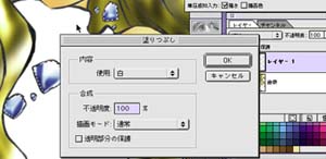 次に新規レイヤーを作り、アルファチャンネルから首飾りの選択範囲を持ってきて、編集から塗りつぶしを選択します。 |