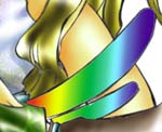 新規レイヤーに選択範囲もってきて、グラデーション(虹)です。