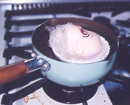 ぐつぐつ。これで穴がふさがるんですね。 |