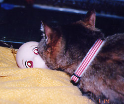 髪の毛切る準備よー。 このままでもじゅうぶん可愛いねシルバー。 |