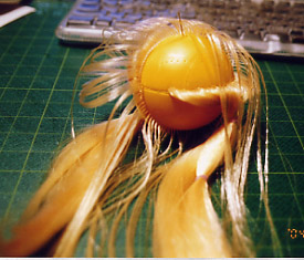 地肌をオレンジに塗ってみます。 これでハゲが目立たなくなるー。 |