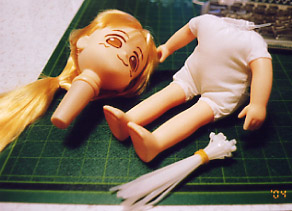 薄め液と、筆と、メディウム。 でも目は後で100均のトップコートで塗り直しました。 |