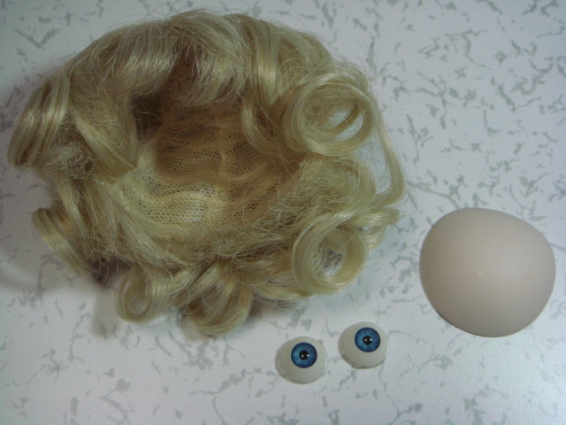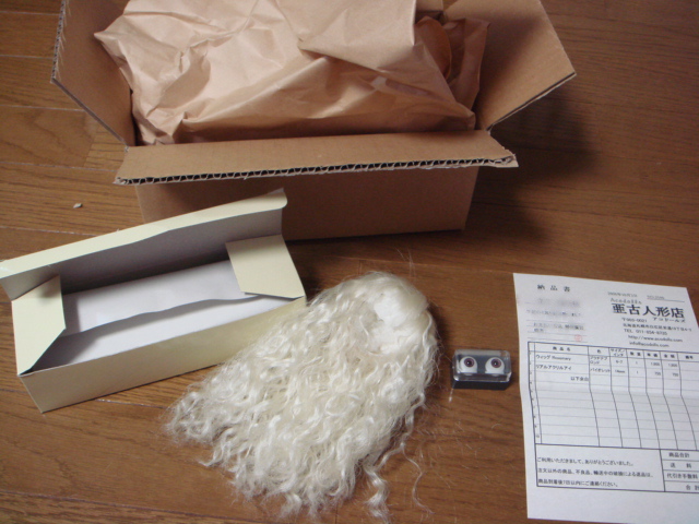 | はがしたヅラと目ん玉と後頭部の蓋。ヅラは耳のところがちぎれてしまいました。 | |