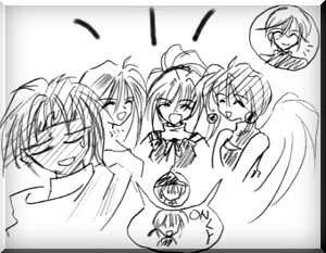 えへ。的場さんに「的場さんイメージフラム君」描いていただきました〜……でもさ〜、普通は御本人のPCとか描いてもらうもんだろうに。でも、気になってたんですよ〜。皆さんがどんなイメージ描いてきてたのか。すーこさんにはルナリアちゃんを描いていただく。……描いてるとこ見るのはじめてー。←当たり前だ!!
