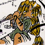 第5回PB2『さらわれた、ときのかなたへ』 「いいから、大人しくしてろー。コレが成功したら本格的に大会なんだから」 第2回マジケ開催。ダル君をアリアちゃんととっ捕まえて凧人間大会の実験台にしておりました。 |