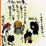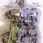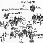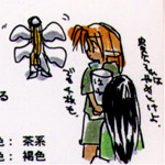 第7回PB1『とぎれた、ゆめのゆくえがしりたくて』 「おまえロクでもないがいい奴だろ」 「褒めてんのかけなしてんのか、 どっちだよルオ」 ひじきケーキ大食い大会開催。セリン君はルオさんによるイモリの黒焼き入りケーキを食わされていました。 |